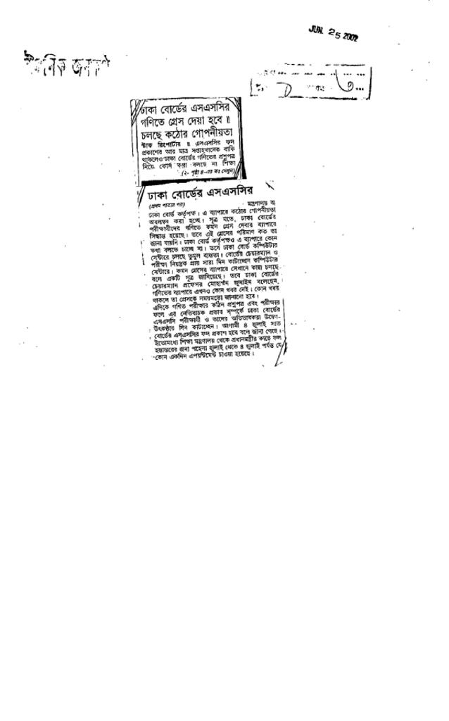 ঢাকা বোর্ডের এসএসসির গণিতে গ্রেস দেয়া হবে Published on Newspaper দৈনিক জনকণ্ঠ Category Public Examination Public Examination SSC Download