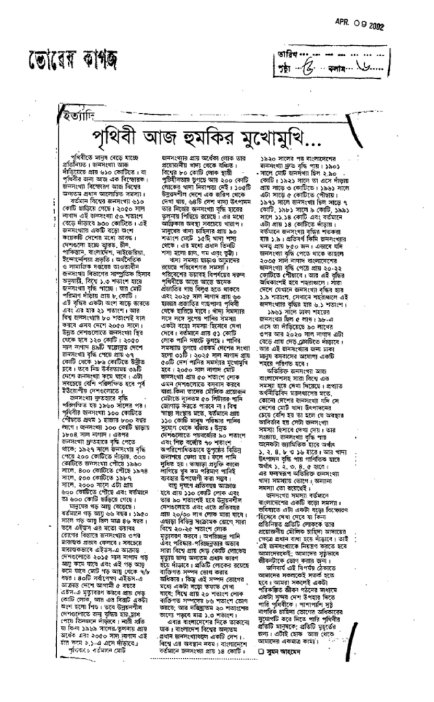 পৃথিবী আজ হুমকির মুখোমুখি Published on Newspaper দৈনিক ভোরের কাগজ Category Personal Opinion / Discussion / Commentary Download