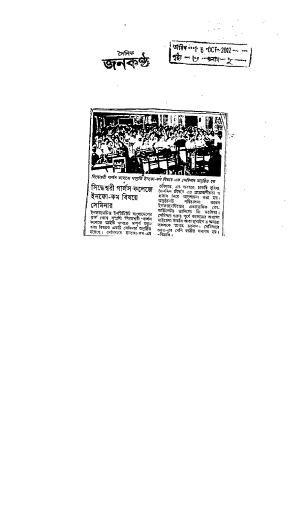সিদ্ধেশ্বরী গার্লস কলেজে ইনফো-কম বিষয়ে সেমিনার Published on Newspaper দৈনিক জনকণ্ঠ Category Women Education Download