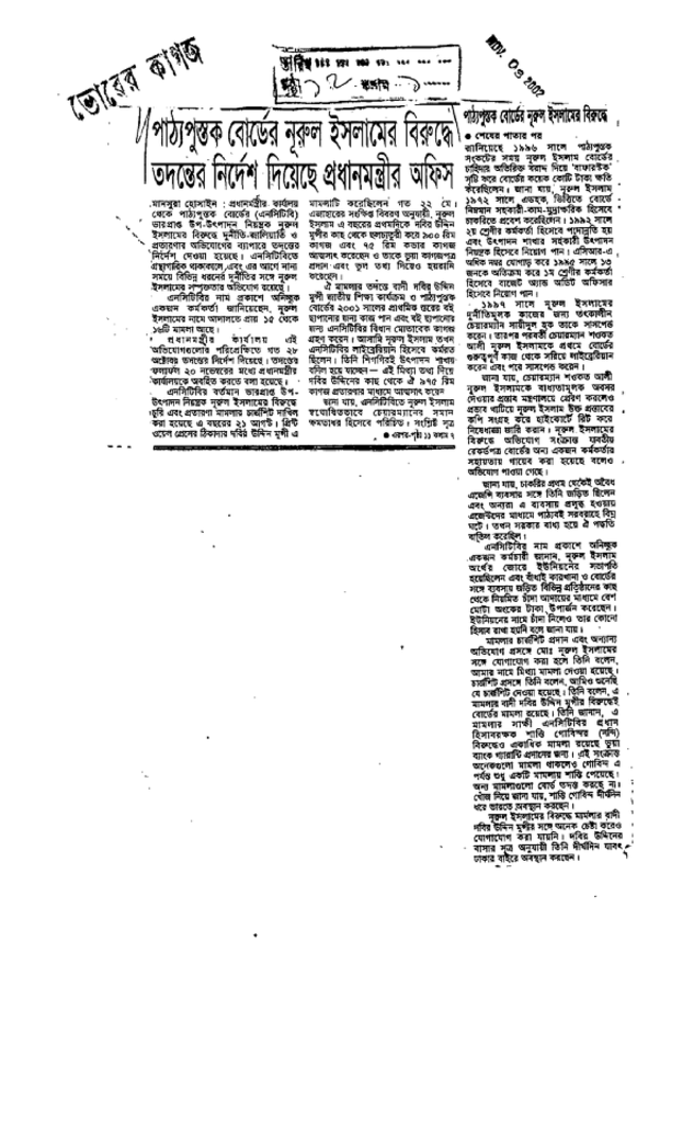 পাঠ্যপুস্তক বোর্ডের নূরুল ইসলামের বিরুদ্ধে তদন্তের নির্দেশ দিয়েছে প্রধানমন্ত্রীর অফিস Published on Newspaper দৈনিক ভোরের কাগজ Category Educational Ministry / Departments Download