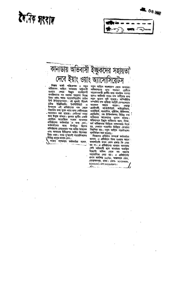 কানাডায় অভিবাসী ইচ্ছুকদের সহায়তা দেবে ইয়াং ওয়াং অ্যাসোসিয়েটস Published on Newspaper দৈনিক সংবাদ Category Others Download