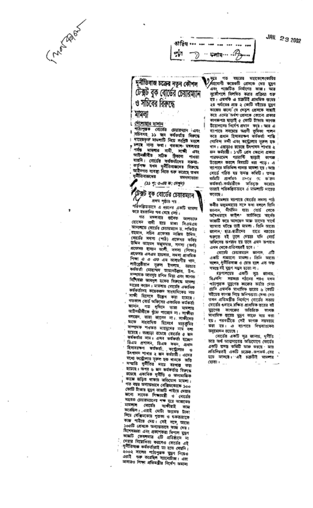 দুর্নীতিবাজ চক্রের নতুন কৌশল টেক্সট বুক বোর্ডের চেয়ারম্যান ও সচিবের বিরূদ্ধে মামলা Published on Newspaper দৈনিক দিনকাল Category Others Download