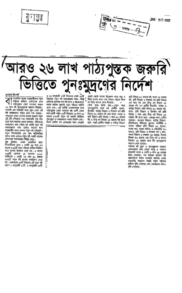 আরও ২৬ লাখ পাঠ্যপুস্তক জরুরি ভিত্তিতে পুনঃমুদ্রণের নির্দেশ Published on Newspaper দৈনিক যুগান্তর Category Educational Ministry / Departments Education Ministry / Division / Directorate Download