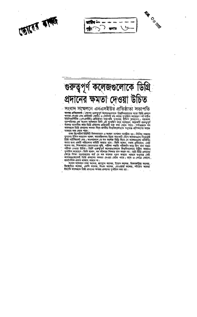 গুরুত্বপুর্ণ কলেজগুলোকে ডিগ্রি প্রদানের ক্ষমতা দেওয়া উচিত Published on Newspaper দৈনিক ভোরের কাগজ Category General Education Download