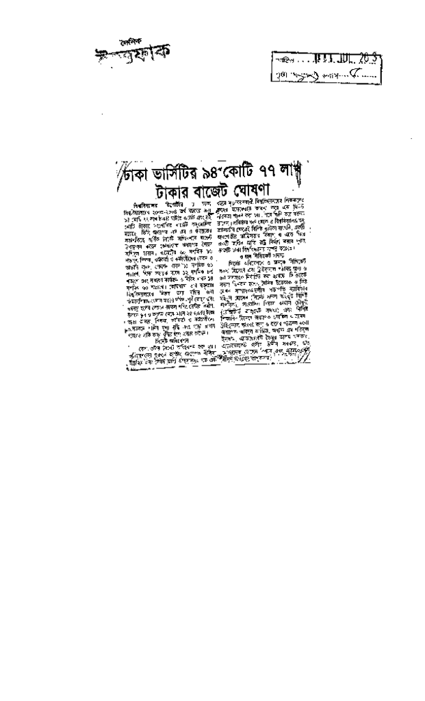 ঢাকা ভার্সিটির ৯৪ কোটি ৭৭ লাখ টাকার বাজেট ঘোষণা Published on Newspaper দৈনিক ইত্তেফাক Category General Education General Education Higher Education Private Download