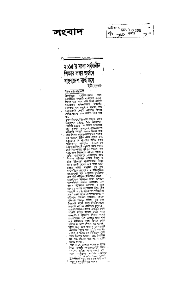 ২০১৫’র মধ্যে সর্বজনীন শিক্ষার লক্ষ্য অর্জনে বাংলাদেশ ব্যর্থ হবে