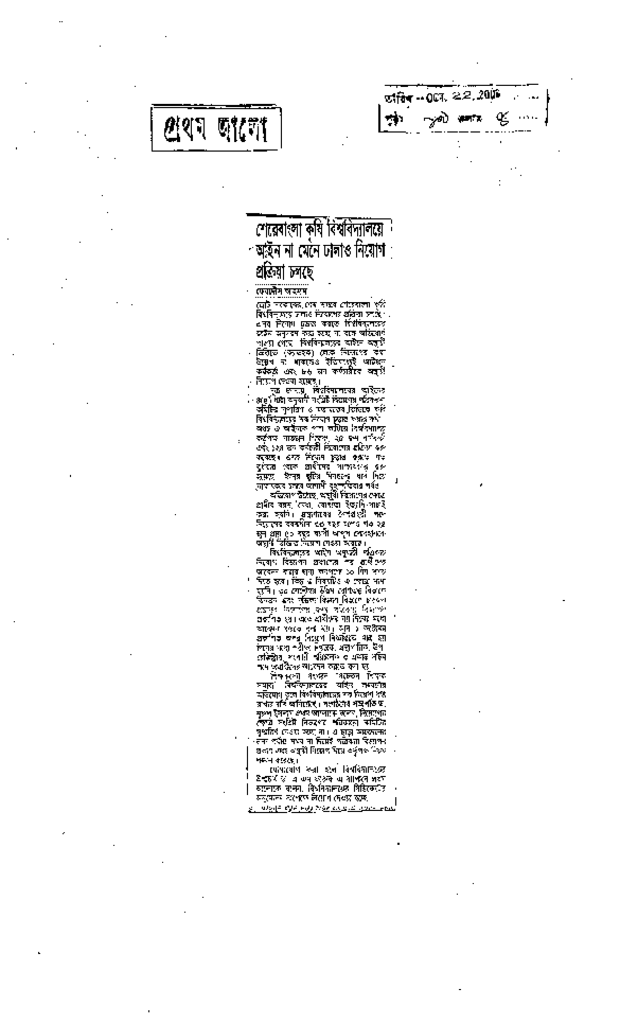 শেরেবাংলা কৃষি বিশ্ববিদ্যালয়ে আইন না মেনে ঢালাও নিয়োগ প্রক্রিয়া চলছে