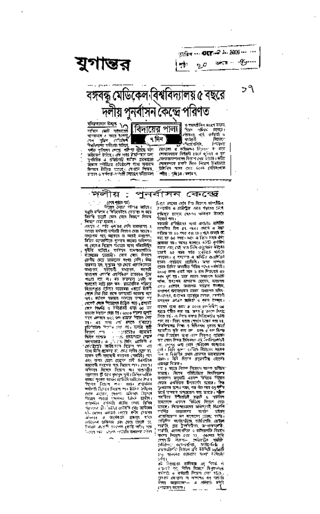 বঙ্গবন্ধু মেডিকেল বিশ্ববিদ্যালয় ৫ বছরে দলীয় পুনর্বাসন কেন্দ্রে পরিণত Published on Newspaper দৈনিক যুগান্তর Category Professional Education Professional Education Medical Download