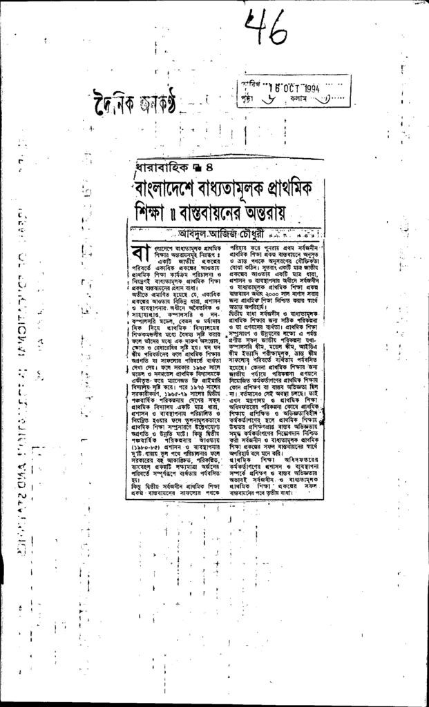 বাংলাদেশে বাধ্যতামূলক প্রাথমিক শিক্ষা। বাস্তবায়নের অন্তরায় Published on Newspaper দৈনিক জনকণ্ঠ Category General Education General Education Download