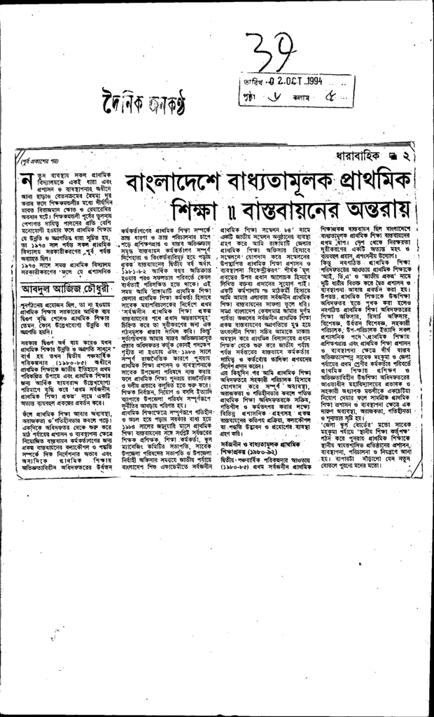 বাংলাদেশের বাধতামূলক প্রাথমিক শিক্ষা । বাস্তবায়নে অন্তরায় Published on Newspaper দৈনিক জনকণ্ঠ Category General Education General Education Download