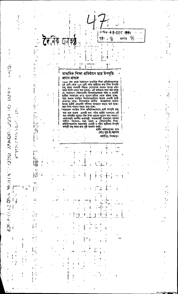 বাধ্যমিক শিক্ষা প্রতিষ্ঠানে উপবৃত্তি প্রদান প্রসঙ্গে Published on Newspaper দৈনিক জনকণ্ঠ Category General Education General Education Download