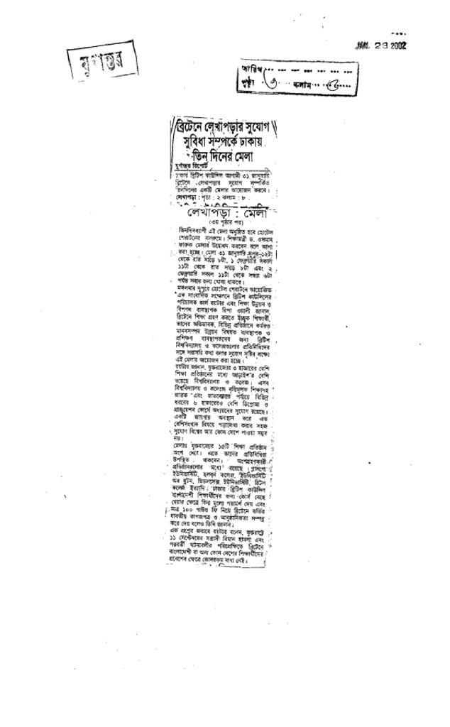 ব্রিটেনে লেখাপড়ার সুবিধা সম্পর্কে ঢাকায় তিন দিনের মেলা Published on Newspaper দৈনিক যুগান্তর Category Educational Week Download