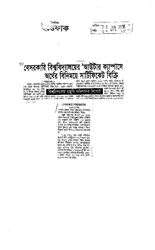 বেরসকারী বিশ্ববিদ্যালয়ের আউটার ক্যাম্পাসে অর্থের বিনিময়ে সার্টিফিকেট বিক্রি Published on Newspaper দৈনিক ইত্তেফাক Category General Education General Education Higher Education Private Download