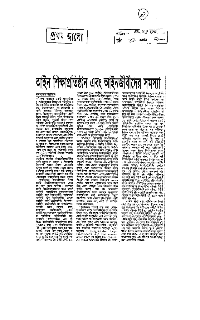 আইন শিক্ষাপ্রতিষ্ঠান এবং আইনজীবীদের সমস্যা Published on Newspaper দৈনিক প্রথম আলো Category General Education General Education Higher Education Public Download
