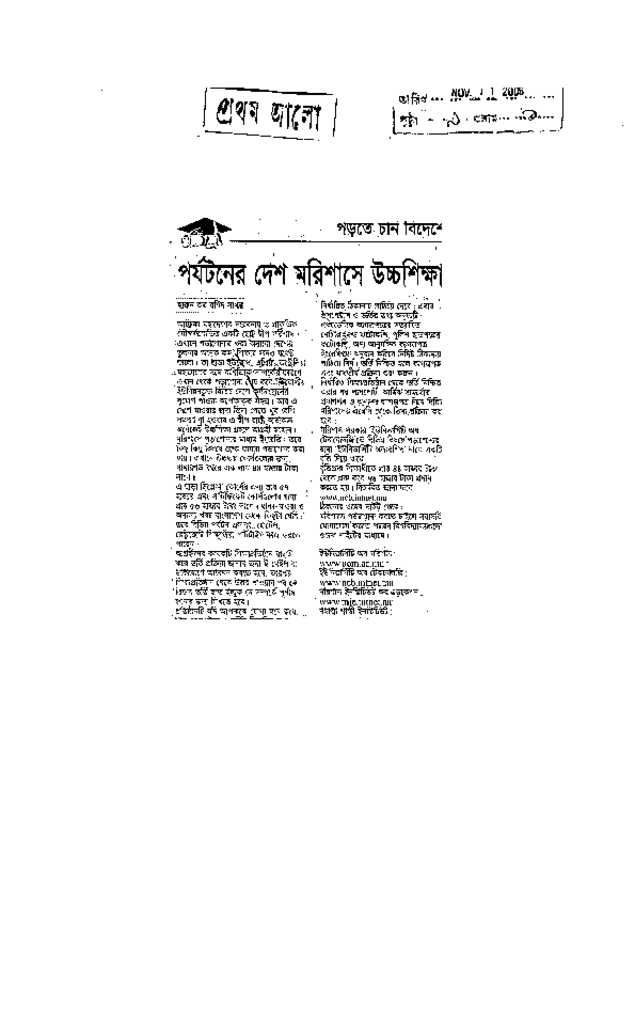 পর্যটনের দেশ মরিশাসে উচ্চশিক্ষা Published on Newspaper দৈনিক প্রথম আলো Category General Education General Education Higher Education Private Download
