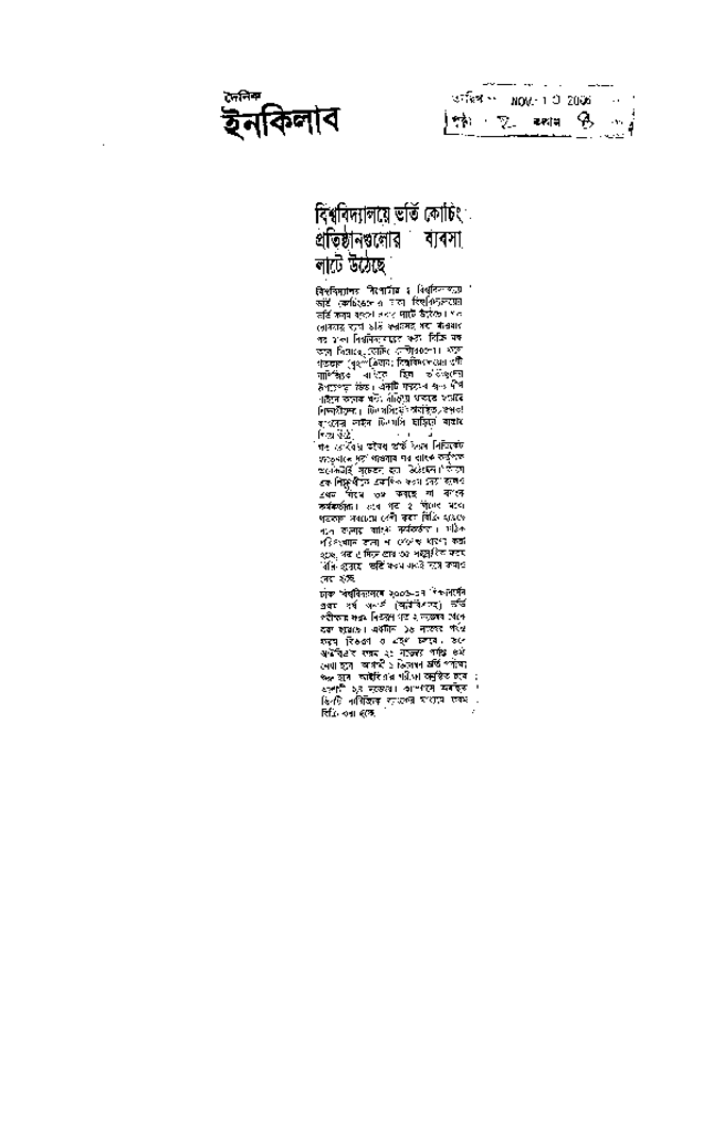 বিশ্ববিদ্যালয়ে ভর্তি কোচিং প্রতিষ্ঠানগুলোর ব্যবসা লাঠে উঠেছে Published on Newspaper দৈনিক ইনকিলাব Category Admission / Seat Problem Admission/Seat Problem Download