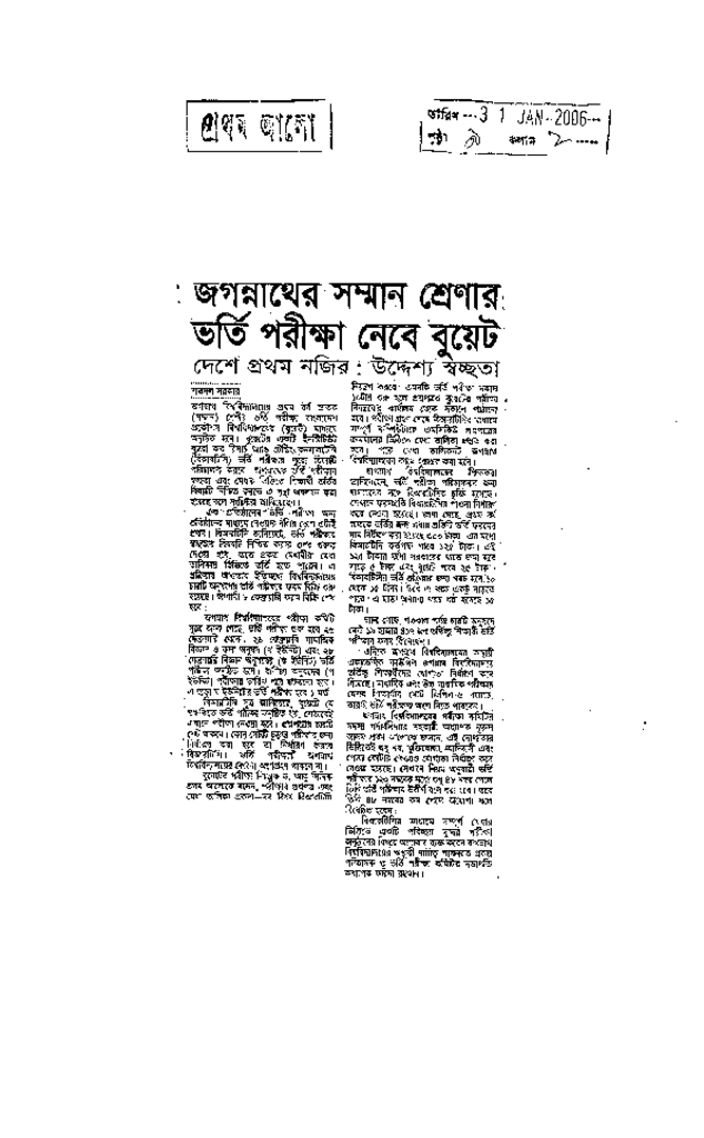 জগন্নাথের সম্মআন শ্রেণীর ভর্তি পরীক্ষা নেবে বুয়েট Published on Newspaper দৈনিক প্রথম আলো Category General Education General Education Higher Education Public Download