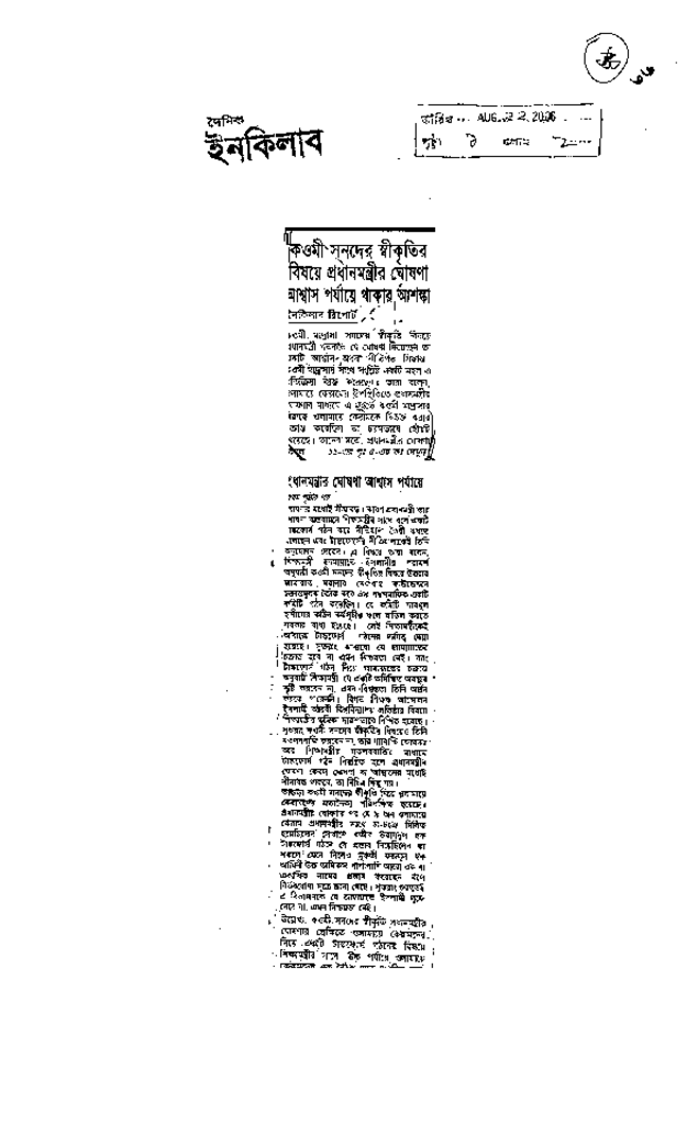 কওমী সনদের স্বীকৃতির বিষয়ে প্রধানমন্ত্রীর ঘোষণা আশ্বাস পর্যায়ে থাকার আশঙ্কা Published on Newspaper দৈনিক ইনকিলাব Category Madrasah Education Madrasah Education Qawmi Download