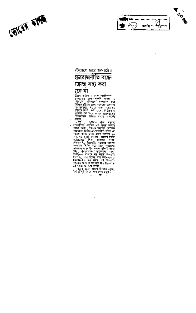 ছাত্ররাজনীতি বন্ধের চক্রান্ত সহ্য করা হবে না Published on Newspaper ভোরের কাগজ Category Student Politics Download