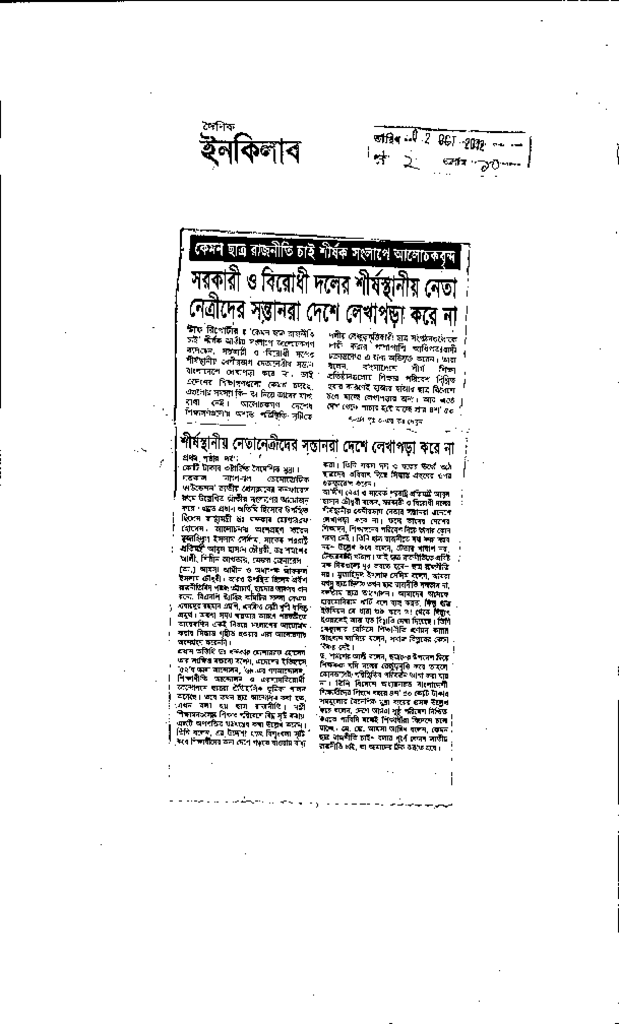 সরকারী ও বিরোধী দলের শীর্ষস্থানীয় নেতা নেত্রীদের সন্তানরা দেশে লেখাপড়া করে না