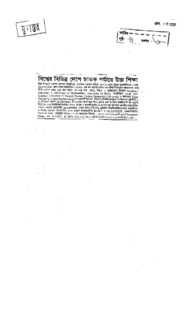 বিশ্বের বিভিন্ন দেশে স্নাতক পর্যায়ে উচ্চ শিক্ষা Published on Newspaper দৈনিক যুগান্তর Category General Education General Education Higher Education Public Download