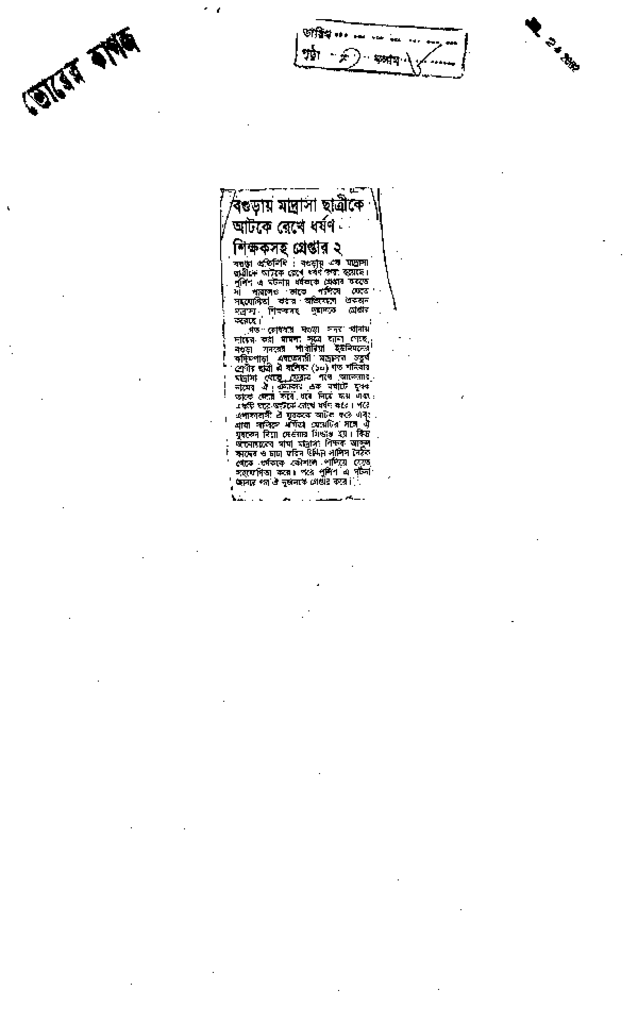 বগুড়ায় মাদ্রাসা ছাত্রীকে আটকে রেখে ধর্ষণ শিক্ষকসহ গ্রেপ্তার ২ Published on Newspaper ভোরের কাগজ Category Madrasah Education Madrasah Education Alia Download
