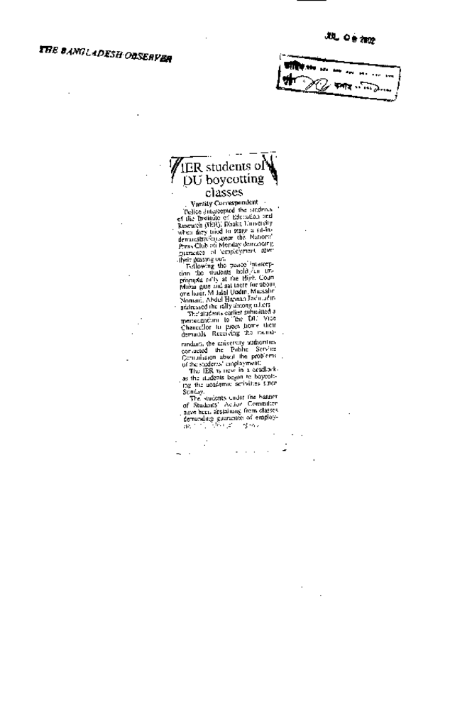 IER students of DU boycotting classes Published on Newspaper The Bangladesh Observer Category Others Download