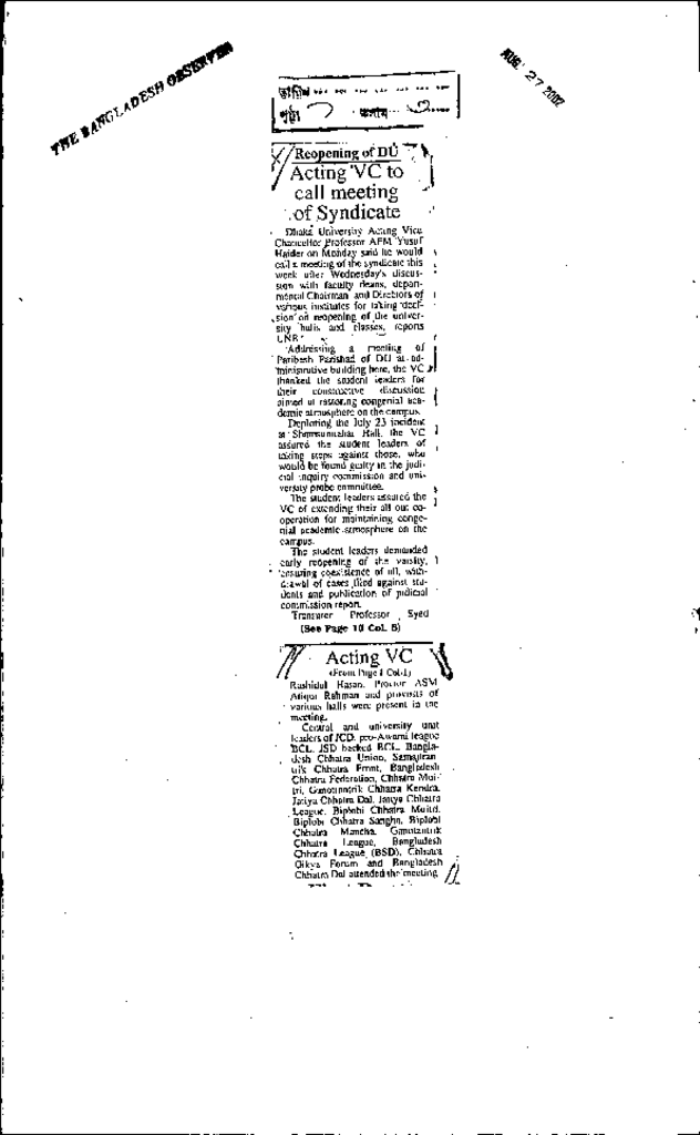 Acting VC to call meeting of Syndicate Published on Newspaper The Bangladesh Observer Category Others Download