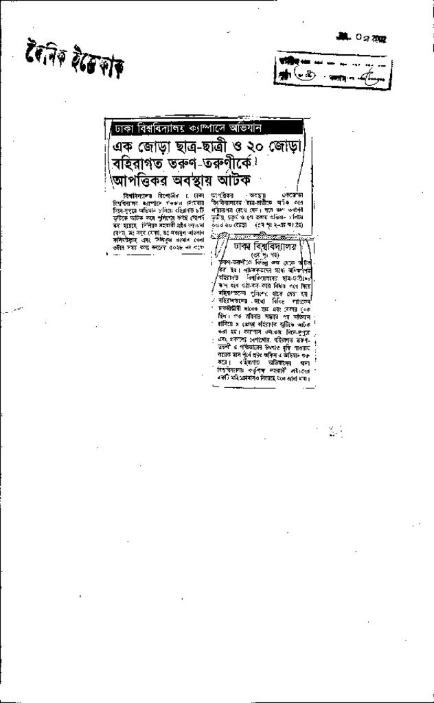 এক জোড়া ছাত্র-ছাত্রি ও ২০ জোড়া বহিরাগত তরূণ-তরূনীকে আপত্তিকর অবস্থায় আটক
