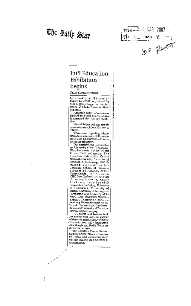 Int'l Education Exhibition begins Published on Newspaper The Daily Star Category Educational Week Download