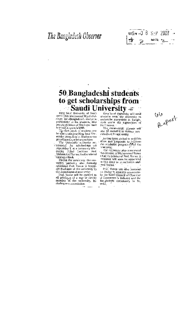 50 Bangladeshi students to get scholarships from Saudi University Published on Newspaper The Bangladesh Observer Category Educational Week Download