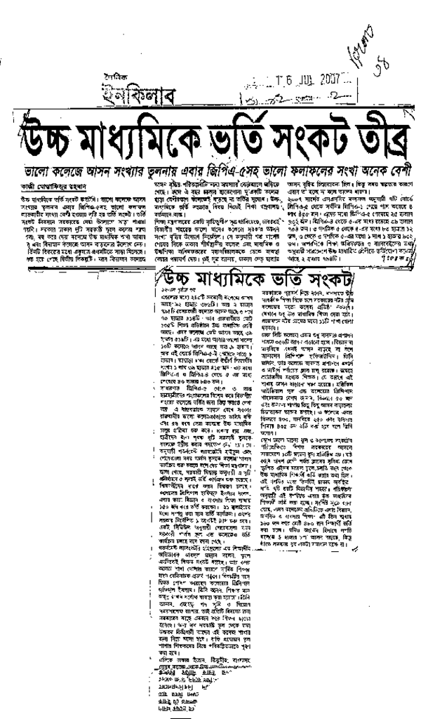 উচ্চ মাধ্যমিকে ভর্তি সংকট তীব্র