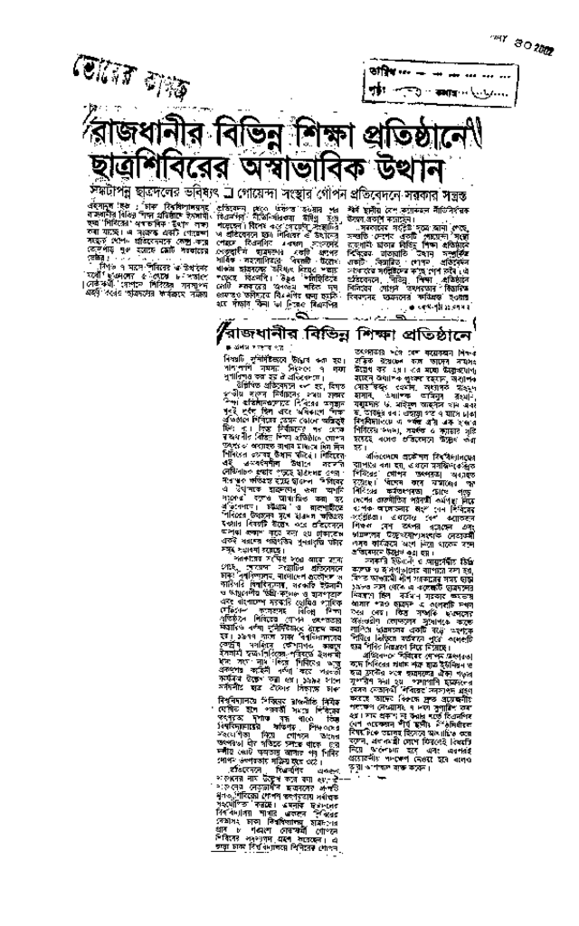 রাজধানীর বিভিন্ন শিক্ষা প্রতিষ্ঠানে ছাত্রশিবিরের অস্বাভাবিক উত্থান Published on Newspaper দৈনিক ভোরের কাগজ Category Student Politics Download
