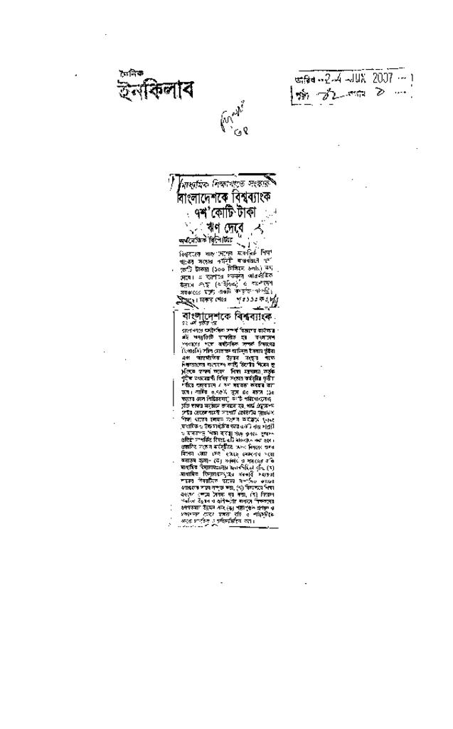 বাংলাদেশকে বিশ্বব্যাংক ৭শ কোটি টাকা ঋণ দেবে Published on Newspaper দৈনিক ইনকিলাব Category General Education Download