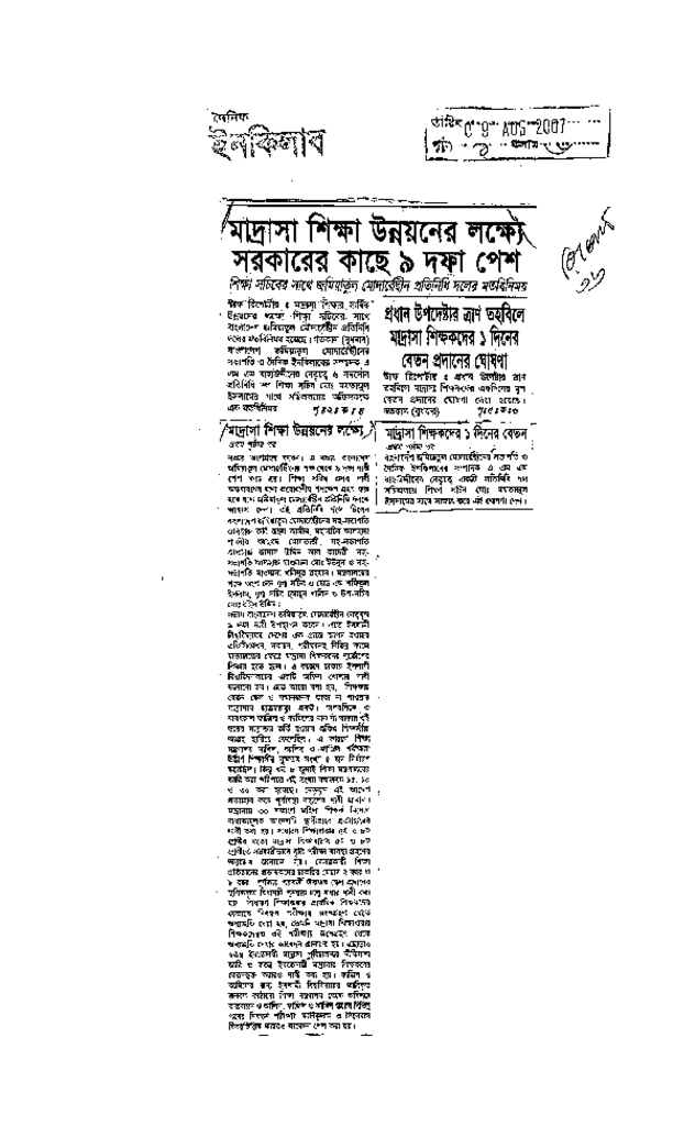 মাদ্রাসা শিক্ষা উন্নয়নের লক্ষ্যে সরকারের কাছে ৯ দফা পেশ