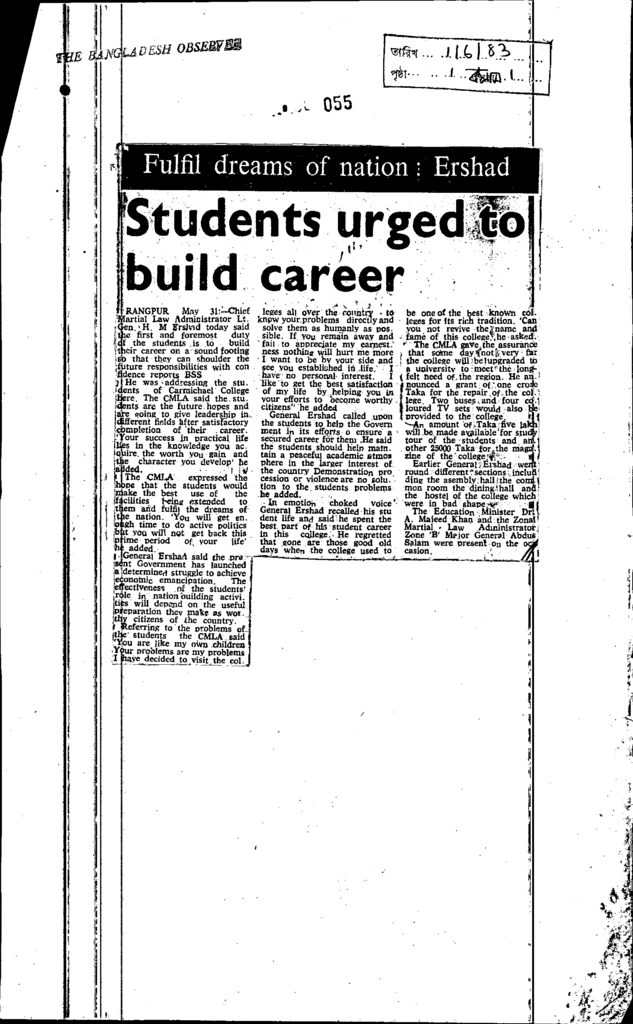 Fulfil dreams of nation: Ershad - Students urged to build nation Published on Newspaper The Bangladesh Observer Category Admission / Seat Problem Download