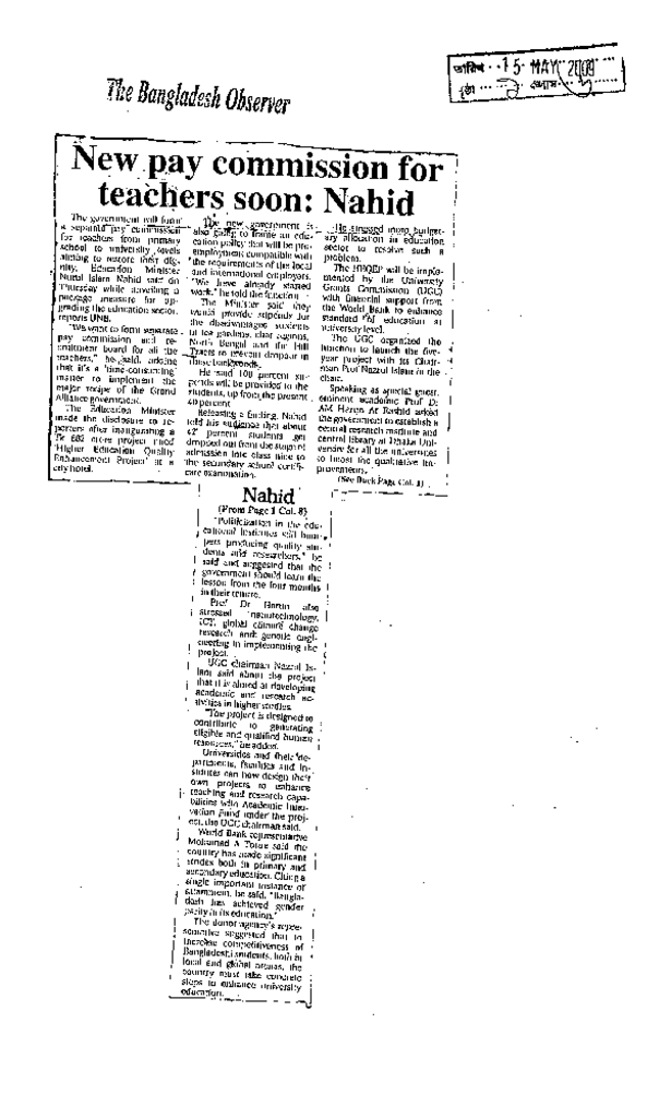 New par commission for teachers soon Published on Newspaper The Bangladesh Observer Category Personal Opinion / Discussion / Commentary Download