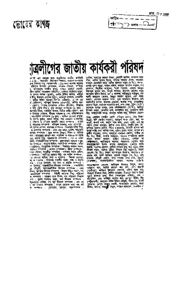 ছাত্রলীগের জাতীয় কার্যকরী পরিষদ Published on Newspaper দৈনিক ভোরের কাগজ Category General Education Download