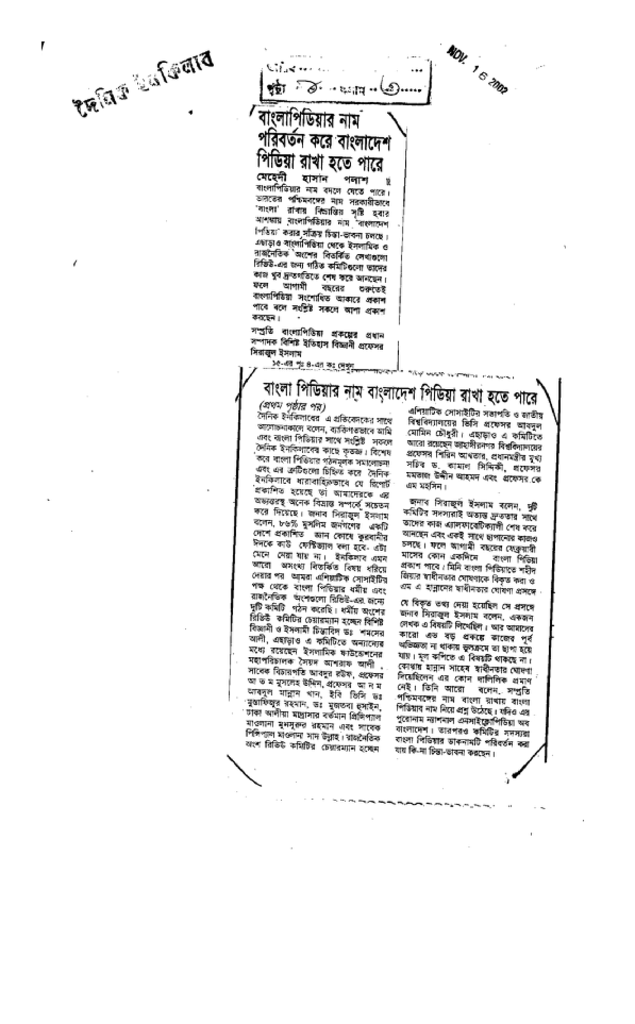 বাংলা পিডিয়ার নাম পরিবর্তন করে বাংলাদেশ পিডিয়া করা হতে পারে Published on Newspaper দৈনিক ইনকিলাব Category Others Download