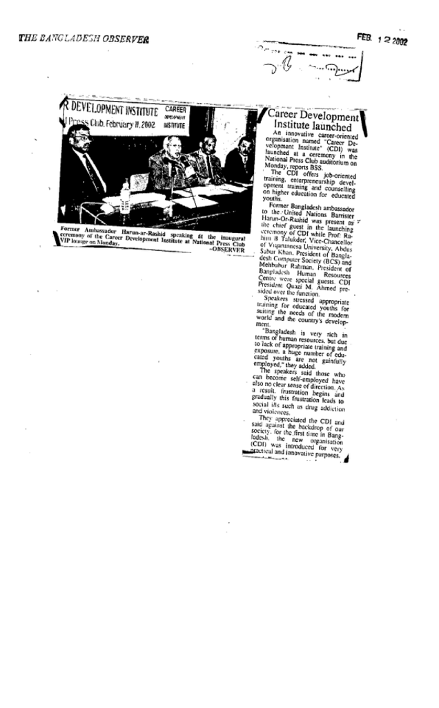Career Development Institute Launched Published on Newspaper The Bangladesh Observer Category Others Download