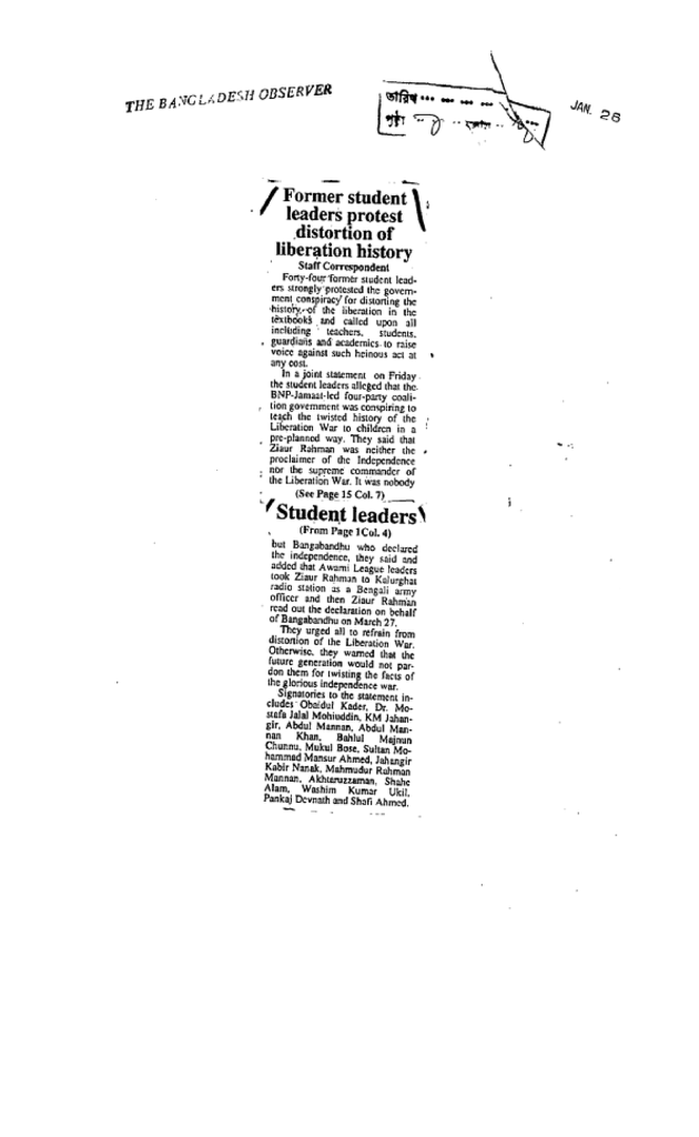 Former Student Leaders Protest destortion of Liberation history Published on Newspaper The Bangladesh Observer Category Others Download