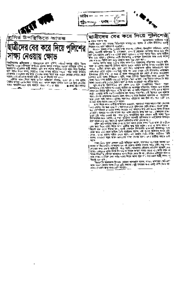 ছাত্রীদের বের করে দিয়ে পুলিশের সাক্ষ্য নেওয়ায় ক্ষোভ Published on Newspaper দৈনিক ভোরের কাগজ Category General Education General Education Higher Education Public Download