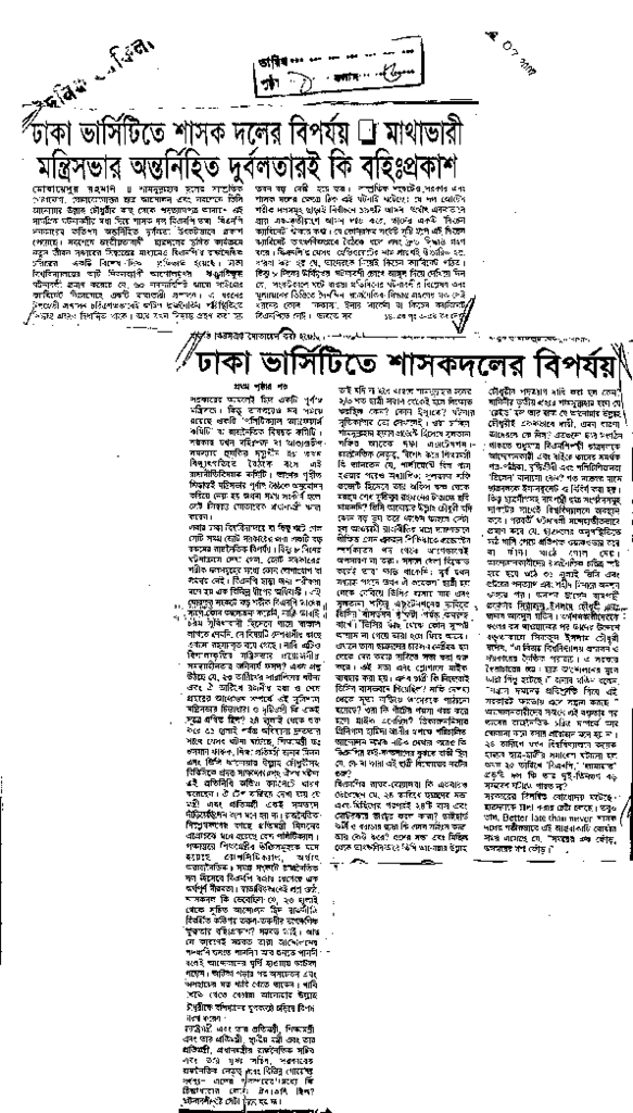 ঢাকা ভার্সিটির শাসক দলের বিপর্যয় // মাথাভারী মন্ত্রিসভার অন্তর্নিহিত দুর্বলতা্রই বহিঃপ্রকাশ