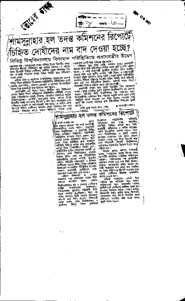 শামসুন্নাহার হল তদন্ত কমিশনের রিপোর্ট চিহ্নিত দোষীদের নাম বাদ দেওয়া হচ্ছে ?