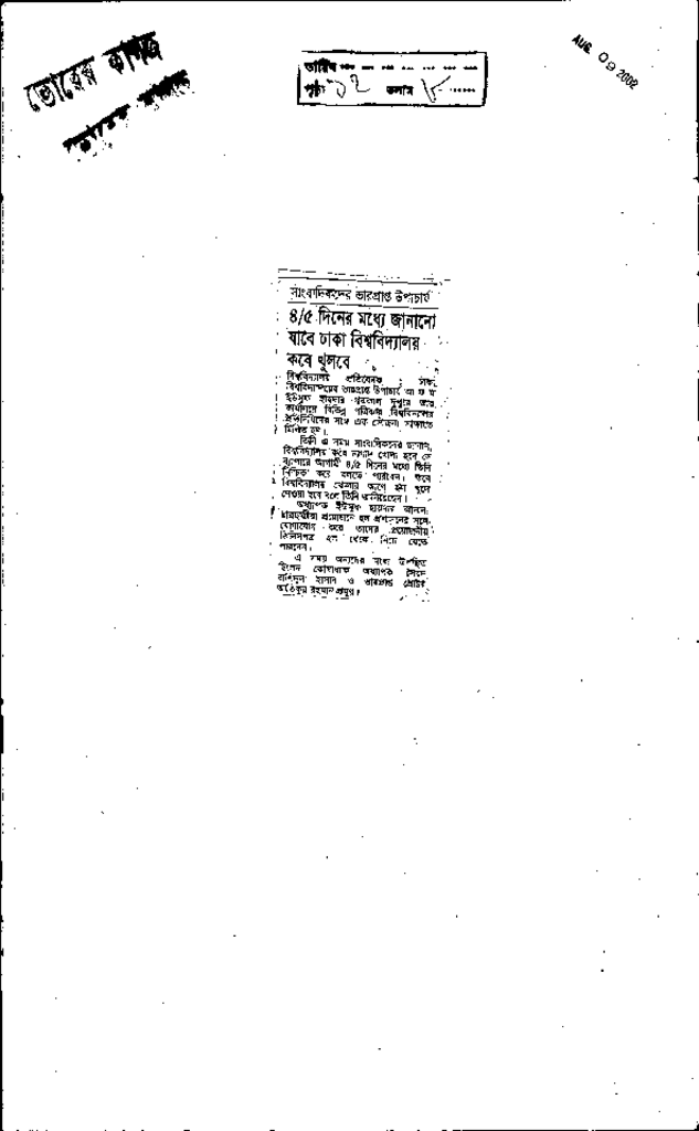 ৪/৫ দিনের মধ্যে জানানো যাবে ঢাকা বিশ্ববিদ্যালয় কবে খুলবে Published on Newspaper দৈনিক ভোরের কাগজ Category General Education General Education Higher Education Public Download
