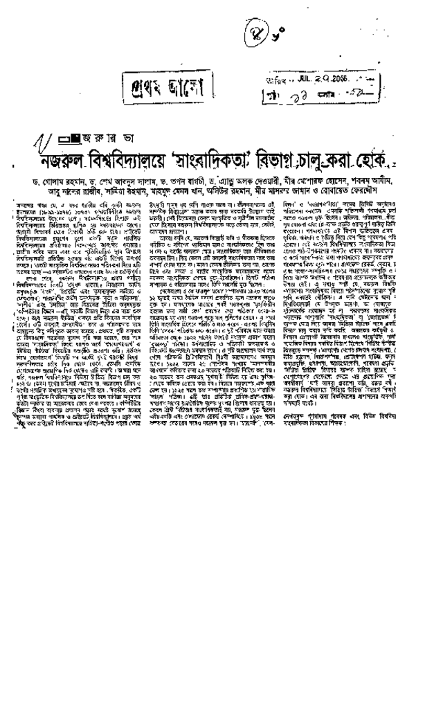 নজরুল বিশ্ববিদ্যালয়ে ’সাংবাদিকতা’ বিভাগ চালু করা হোক Published on Newspaper দৈনিক প্রথম আলো Category General Education General Education Higher Education Public Download