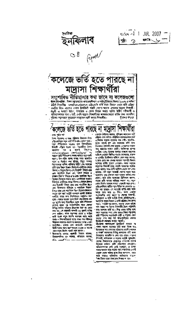 কলেজে ভর্তি হতে পারছেনা মাদ্রাসা শিক্ষার্থীরা