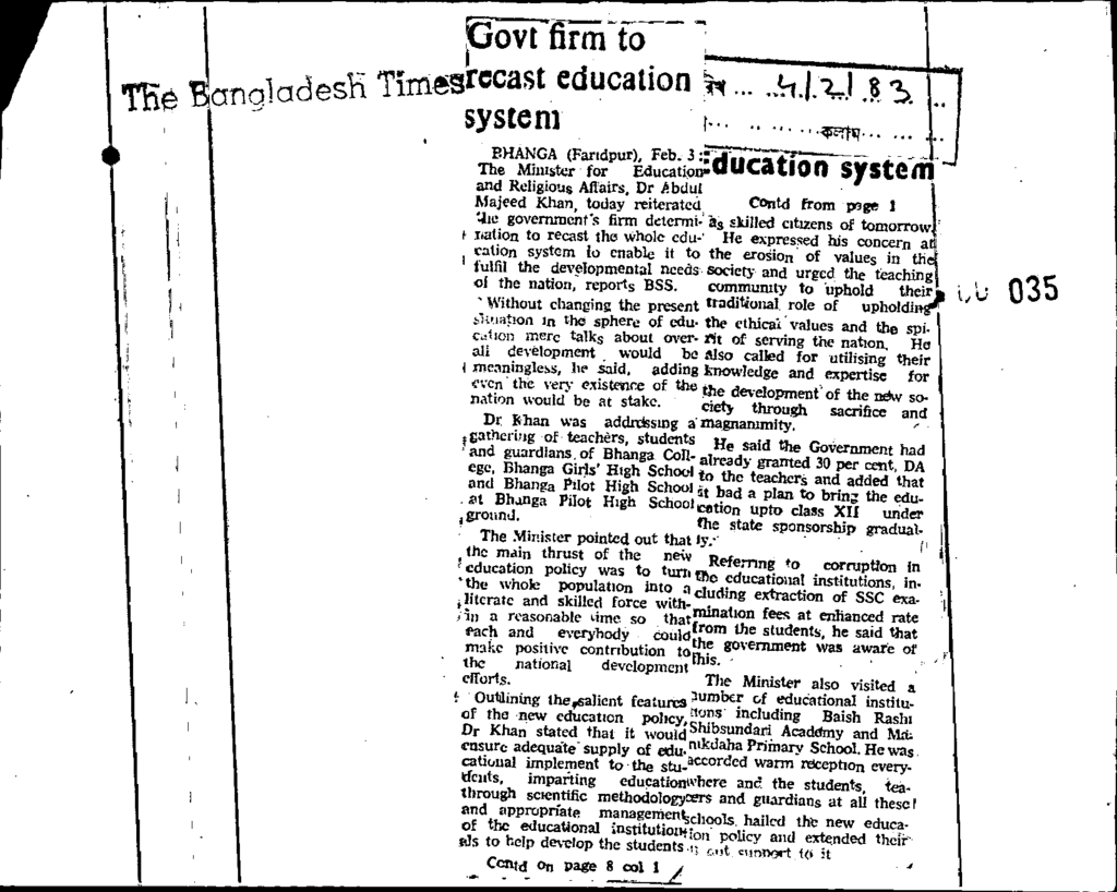 Govt firm to recast education system Published on Newspaper The Bangladesh Times Category Admission / Seat Problem Download