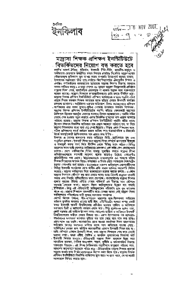 মাদ্রাসা শিক্ষক প্রশিক্ষণ ইনস্টিটিউটে বিতর্কিতদের নিয়োগ বন্ধ করতে হবে Published on Newspaper দৈনিক ইনকিলাব Category Madrasah Education Madrasah Education Alia Download