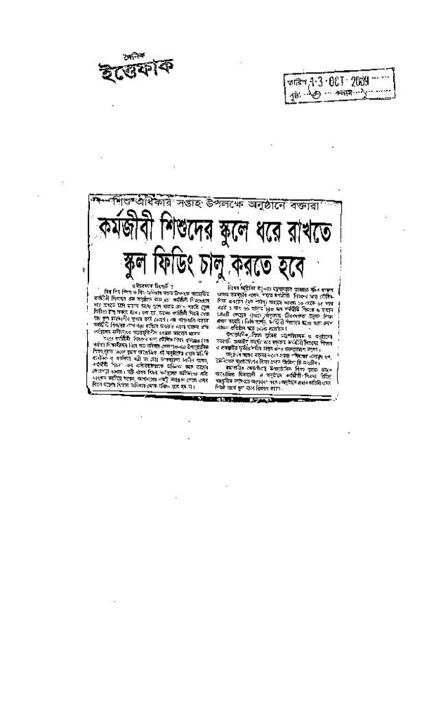 কর্মজীবী শিশুদের স্কুলে ধরে রাখতে স্কুল ফিডিং চালু করতে হবে Published on Newspaper দৈনিক ইত্তেফাক Category Child Education Download